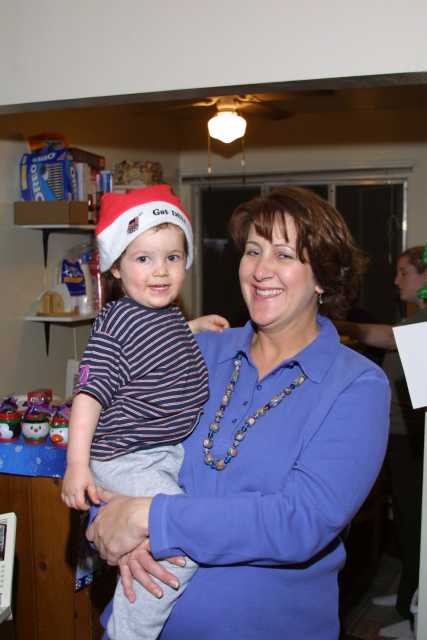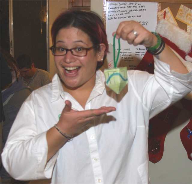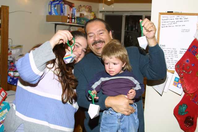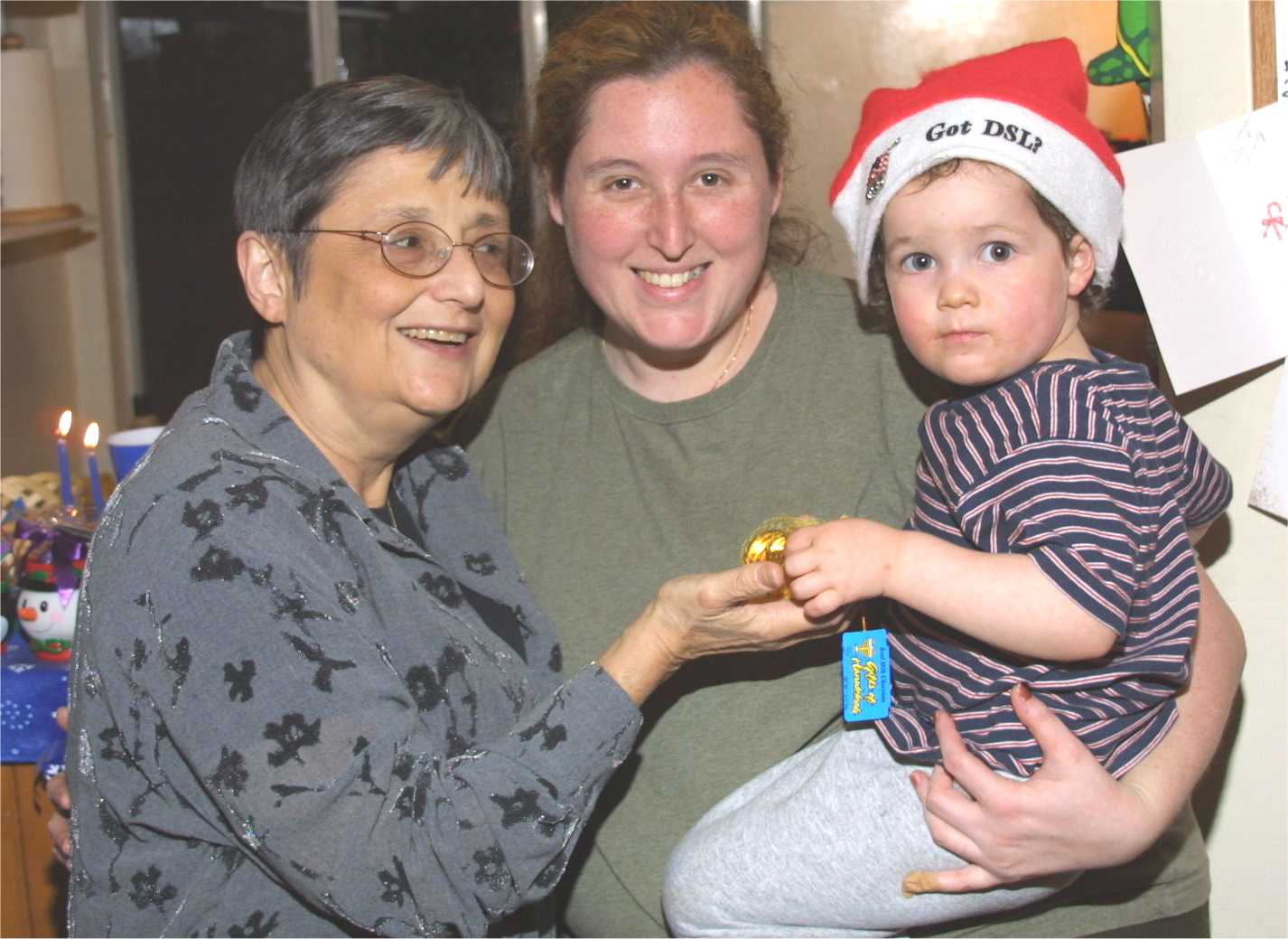 Sandra, Rachael and Alex after dinner, before dreidel making. |