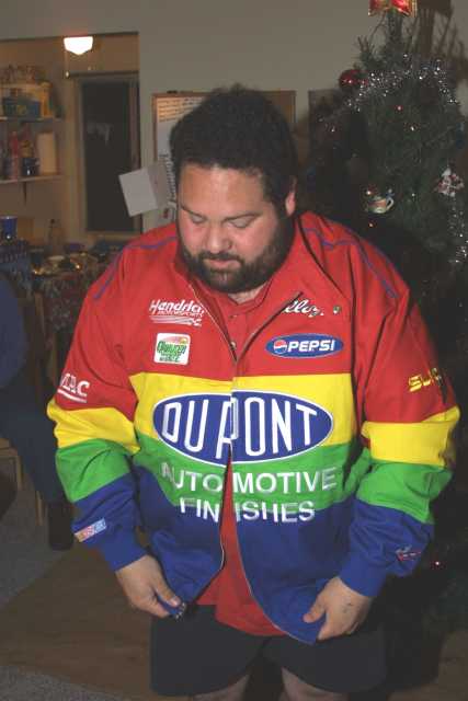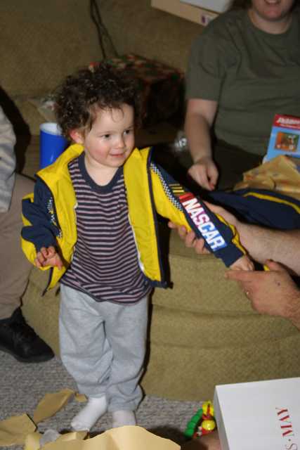 Damian got a Nascar Jacket for Chanukah. |