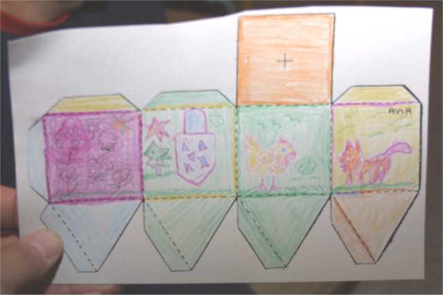 Ana's dreidel before being cut from the sheet and assembled. |